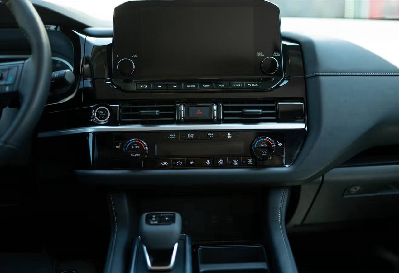 Safety and convenience converge in the Nissan Pathfinder's comprehensive technology suite. The vehicle's advanced safety systems include multiple airbags, stability control, and modern driver assistance features that work together to protect all 8 passengers. The user-friendly infotainment interface provides quick access to navigation and phone functions, while the available premium audio system transforms the cabin into a mobile concert hall.