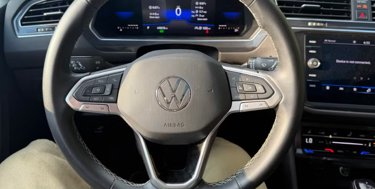 Safety and convenience converge in the Volkswagen Tiguan's comprehensive technology suite. The vehicle's advanced safety systems include multiple airbags, stability control, forward collision warning with autonomous emergency braking, and blind-spot monitoring that work together to protect all 5 passengers. The touchscreen infotainment system provides quick access to navigation and phone functions via App-Connect, while the available Fender premium audio system delivers concert-quality sound.